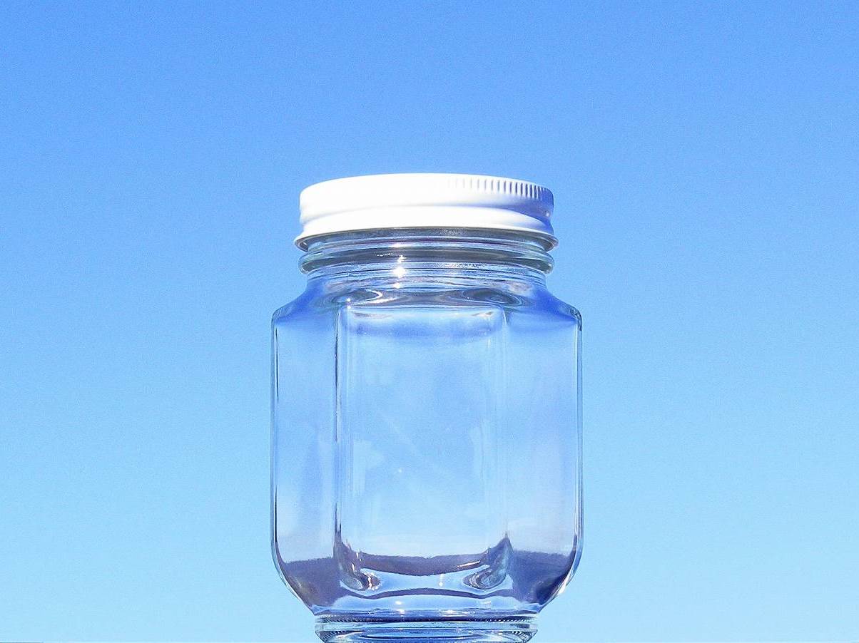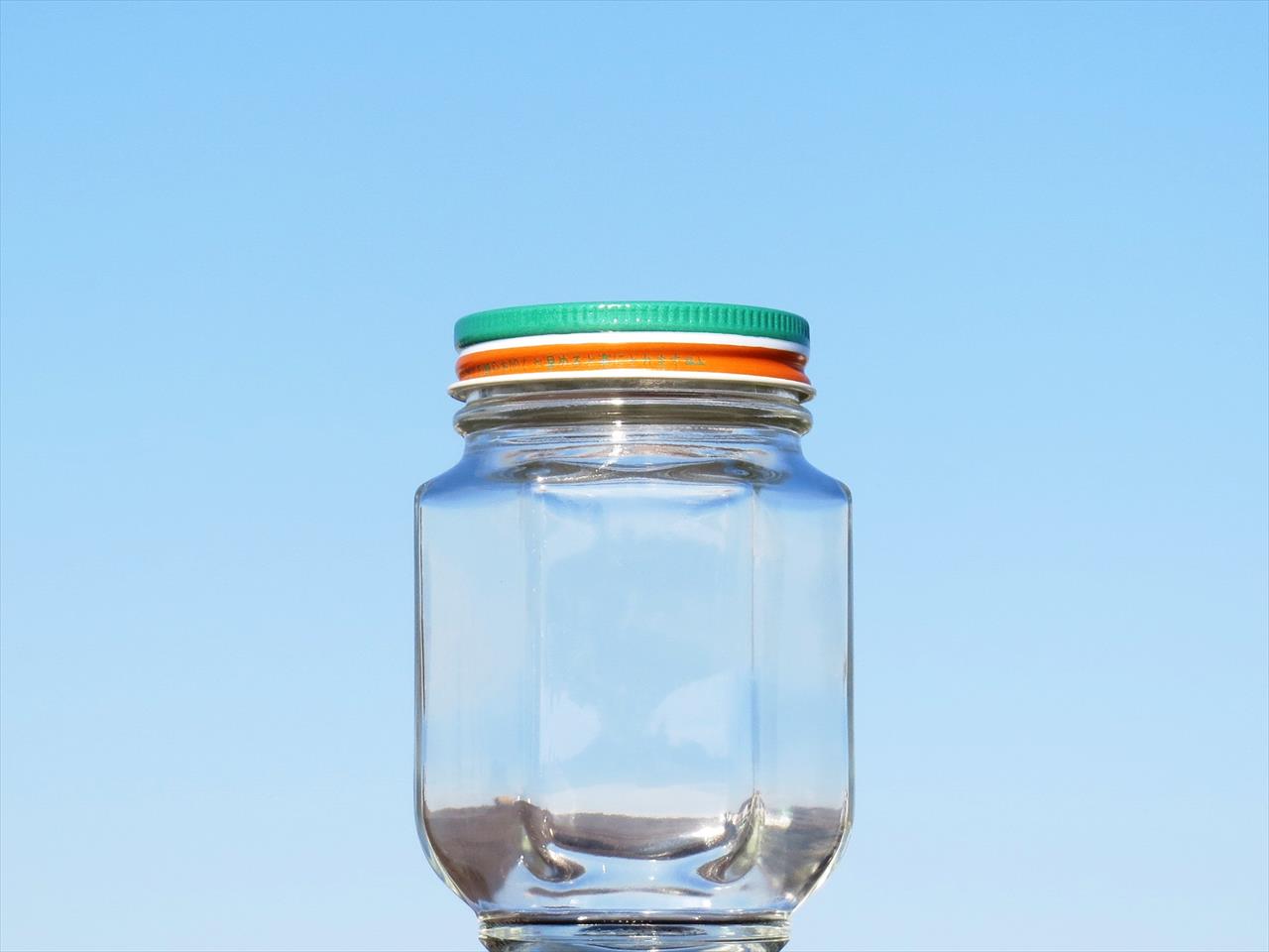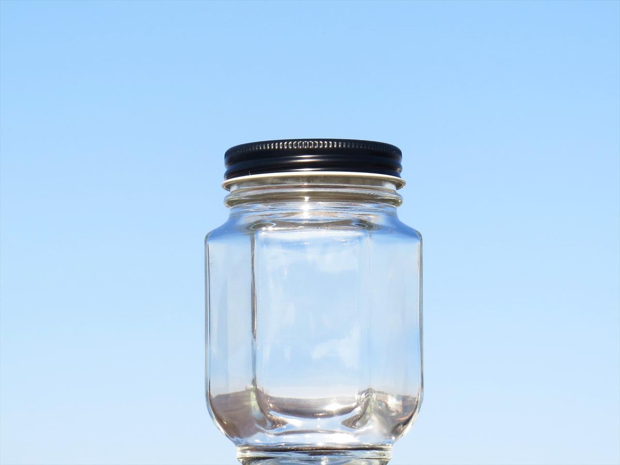 シャープなデザインの六角保存瓶です。