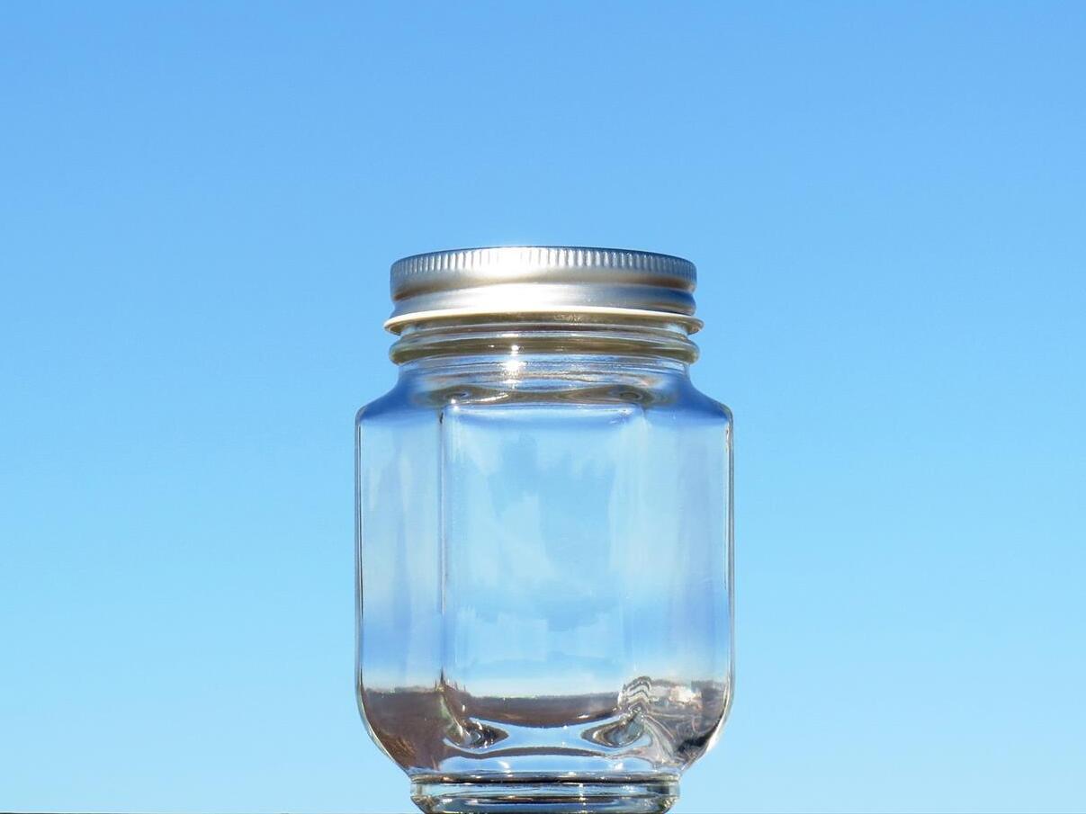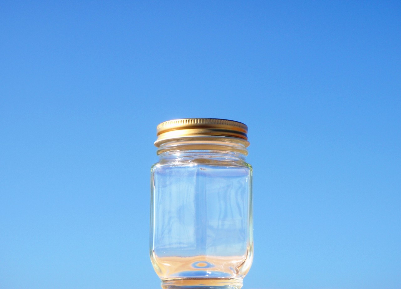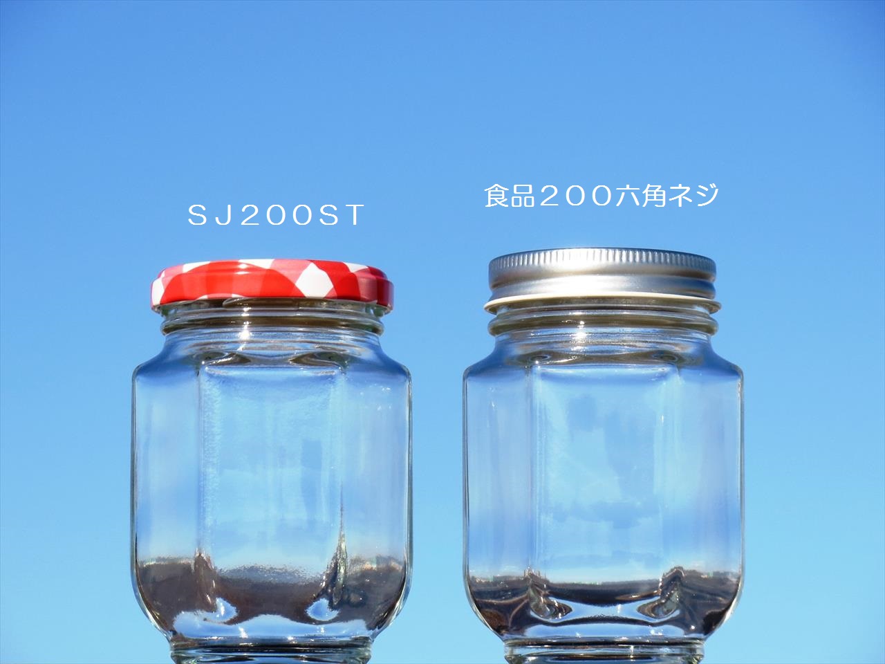 シャープなデザインの六角保存瓶です。