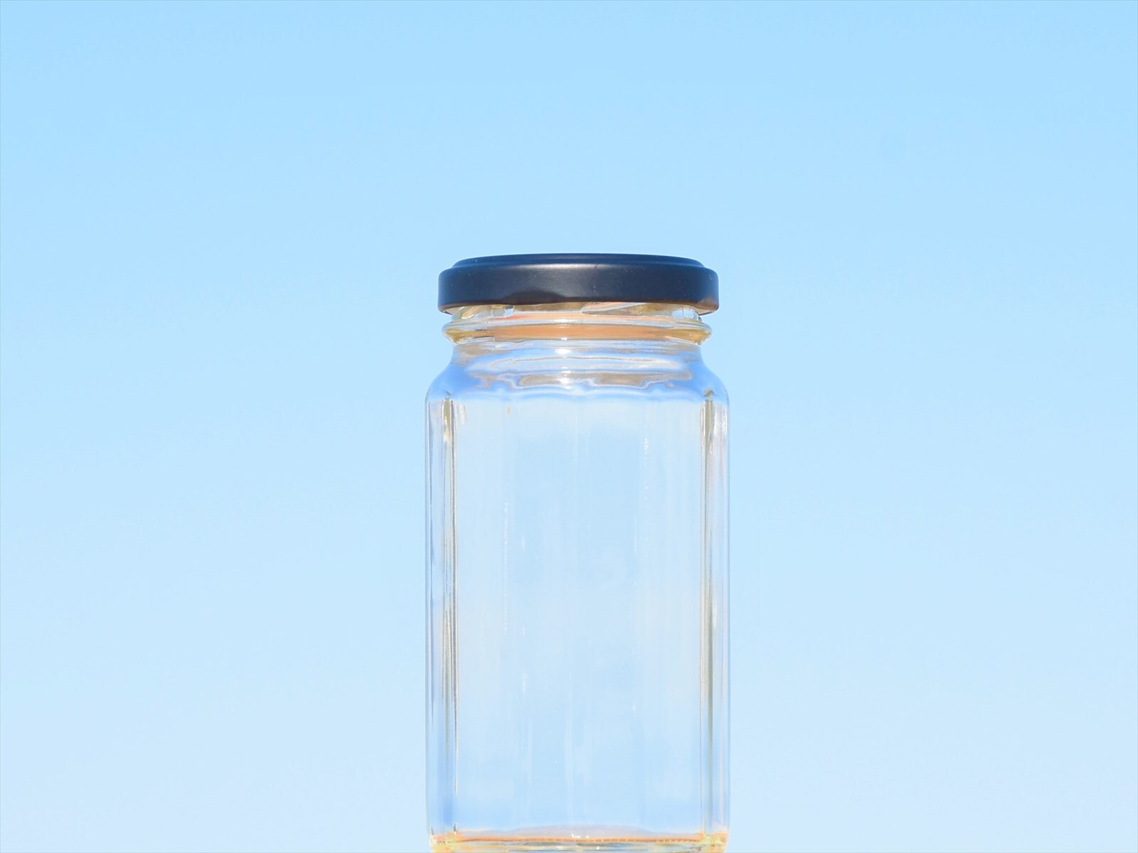 十二角の多面型デザインのおしゃれなジャム瓶。