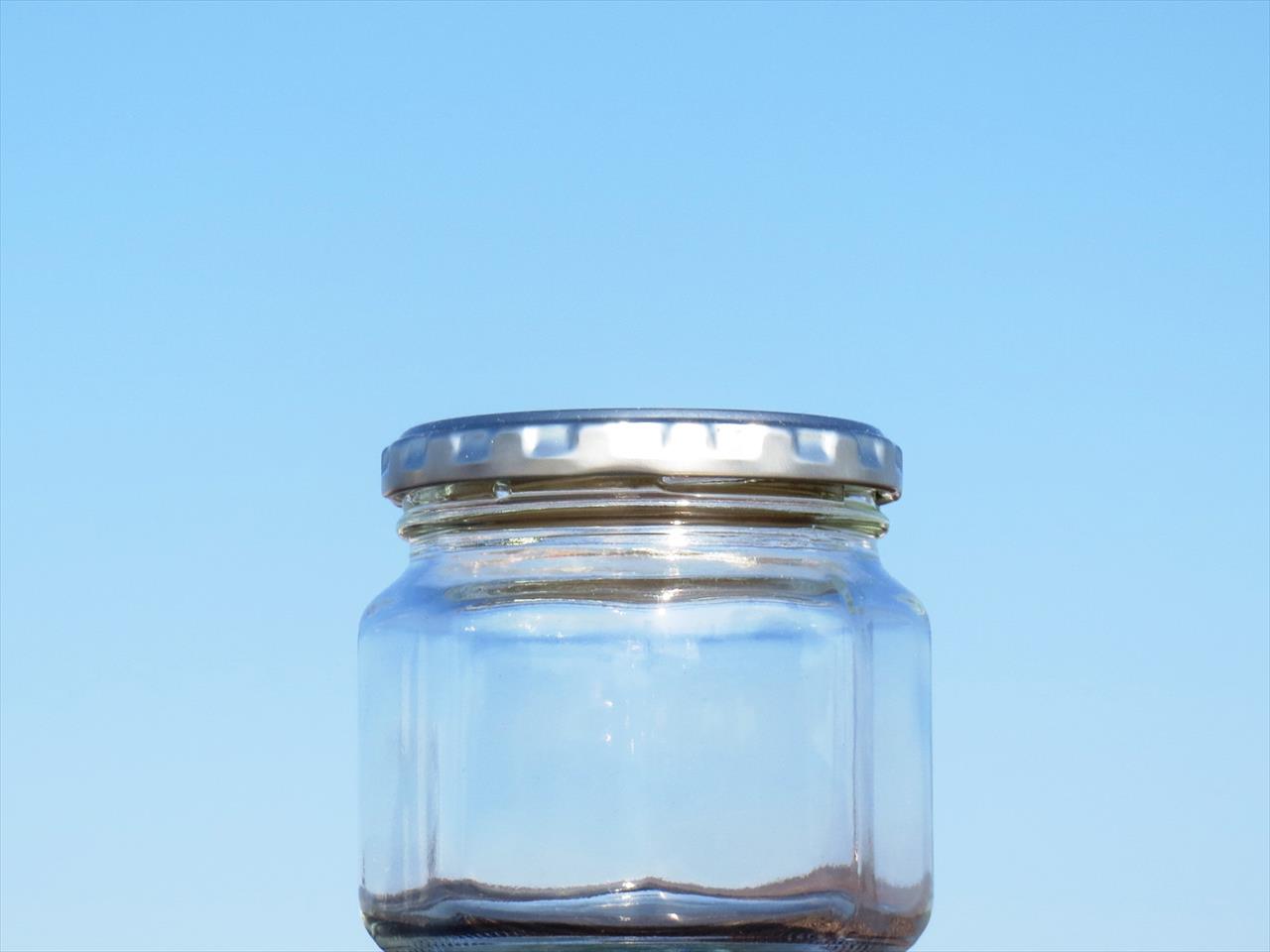 角の部分も柔らかみの有る優しいデザインが特徴のジャム瓶。