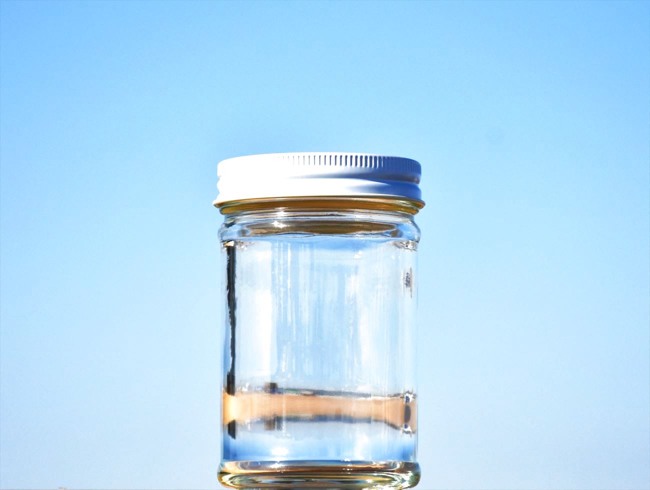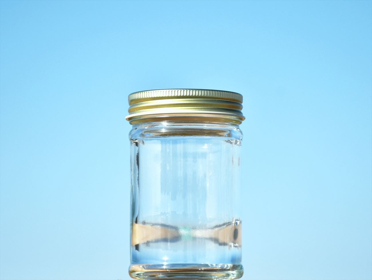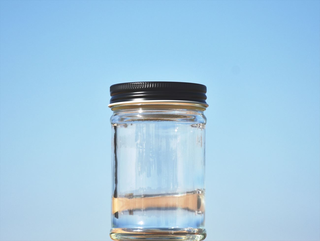 キャップも含めてまとまりのあるシルエットの保存瓶。