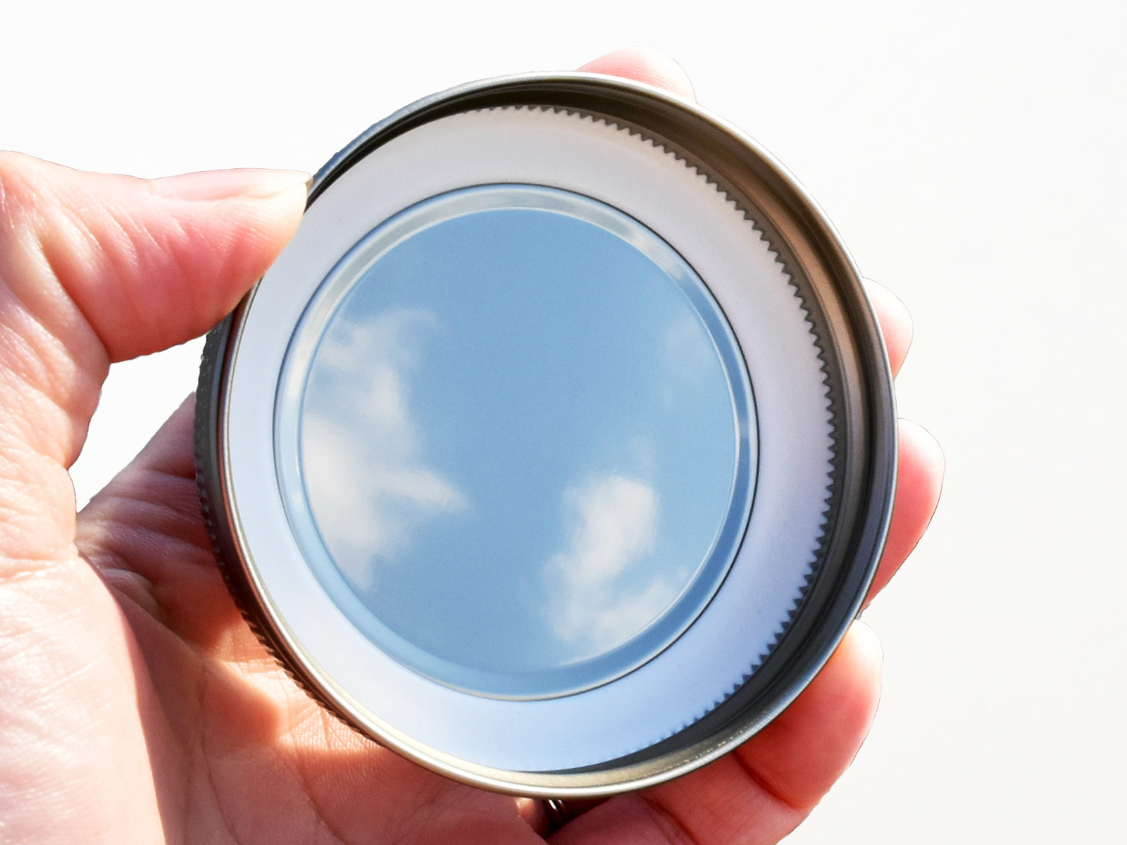 通常のS70キャップの銀無地(ブリキ製)とは異なり、天面も内面も光沢の強い色調となっています。
