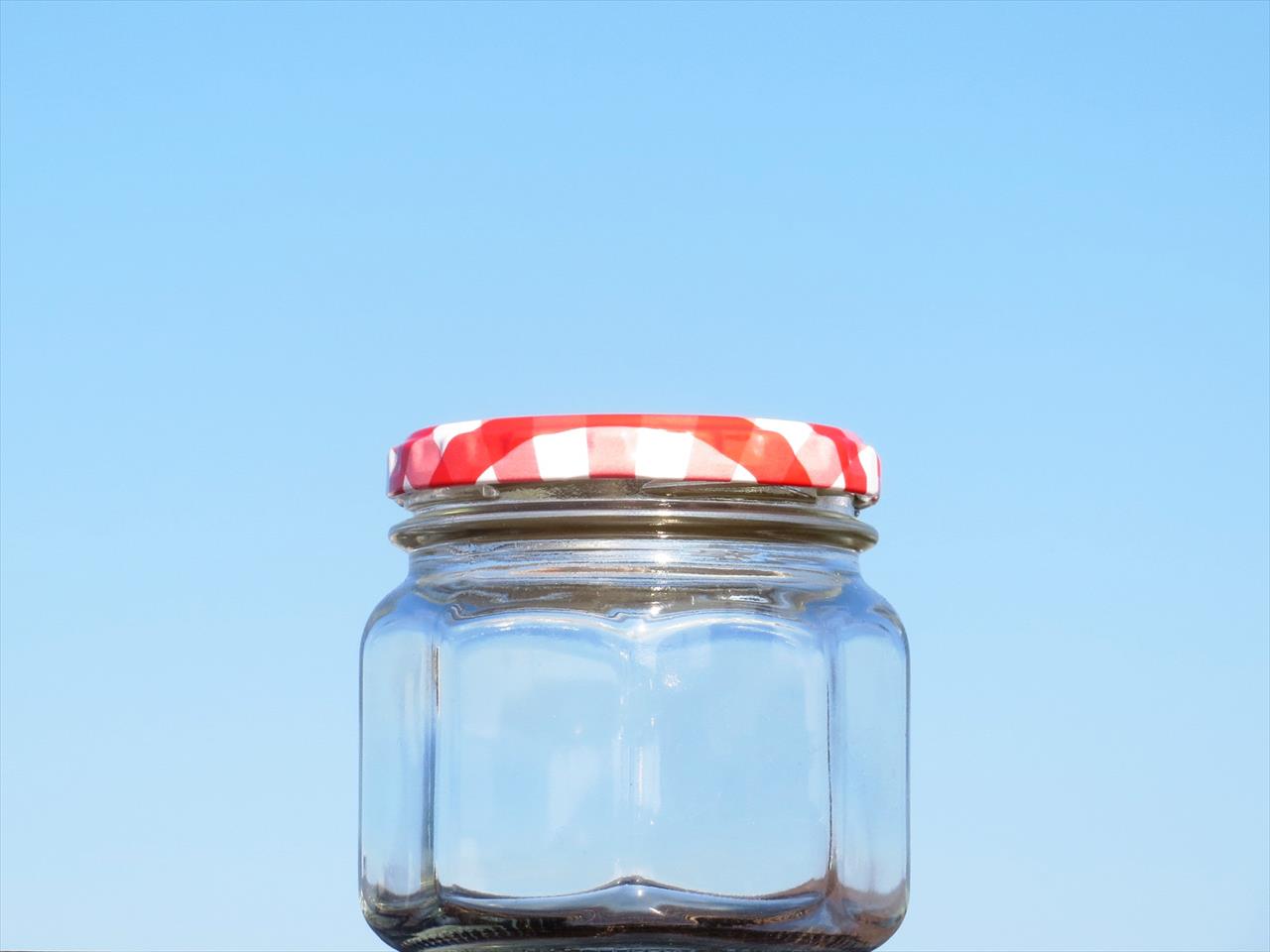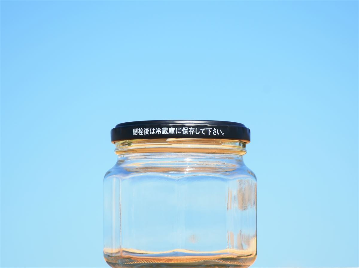 どっしりと安定感があるデザインのジャム瓶です。