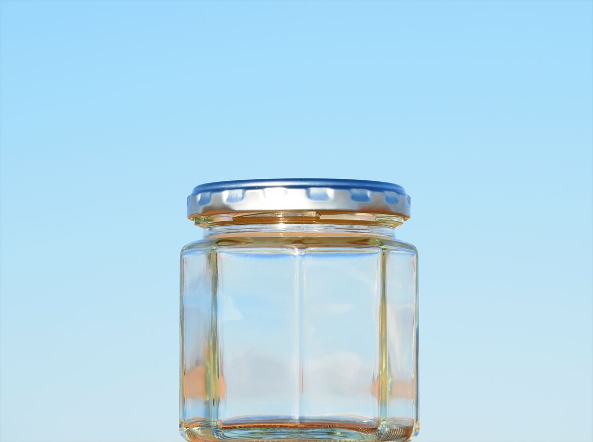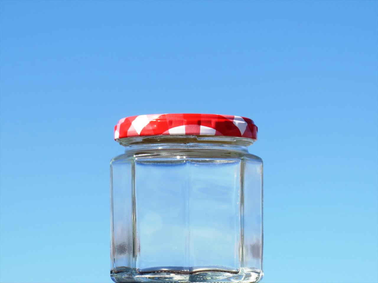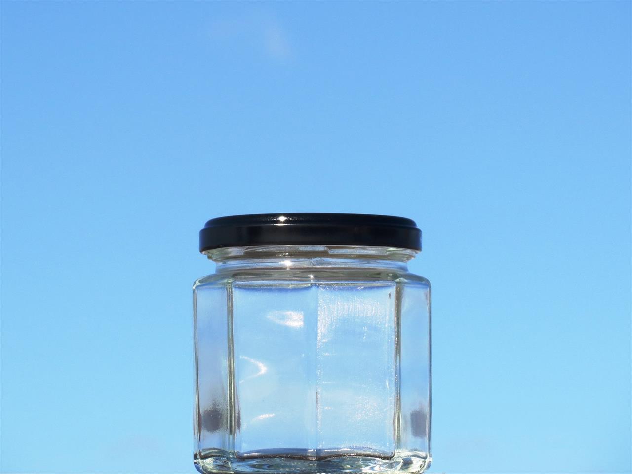 ジャムで約200g入る八角瓶のジャム瓶です。