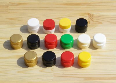 液切れの良い調味料用の樹脂キャップは14種類から選んでいただけます。