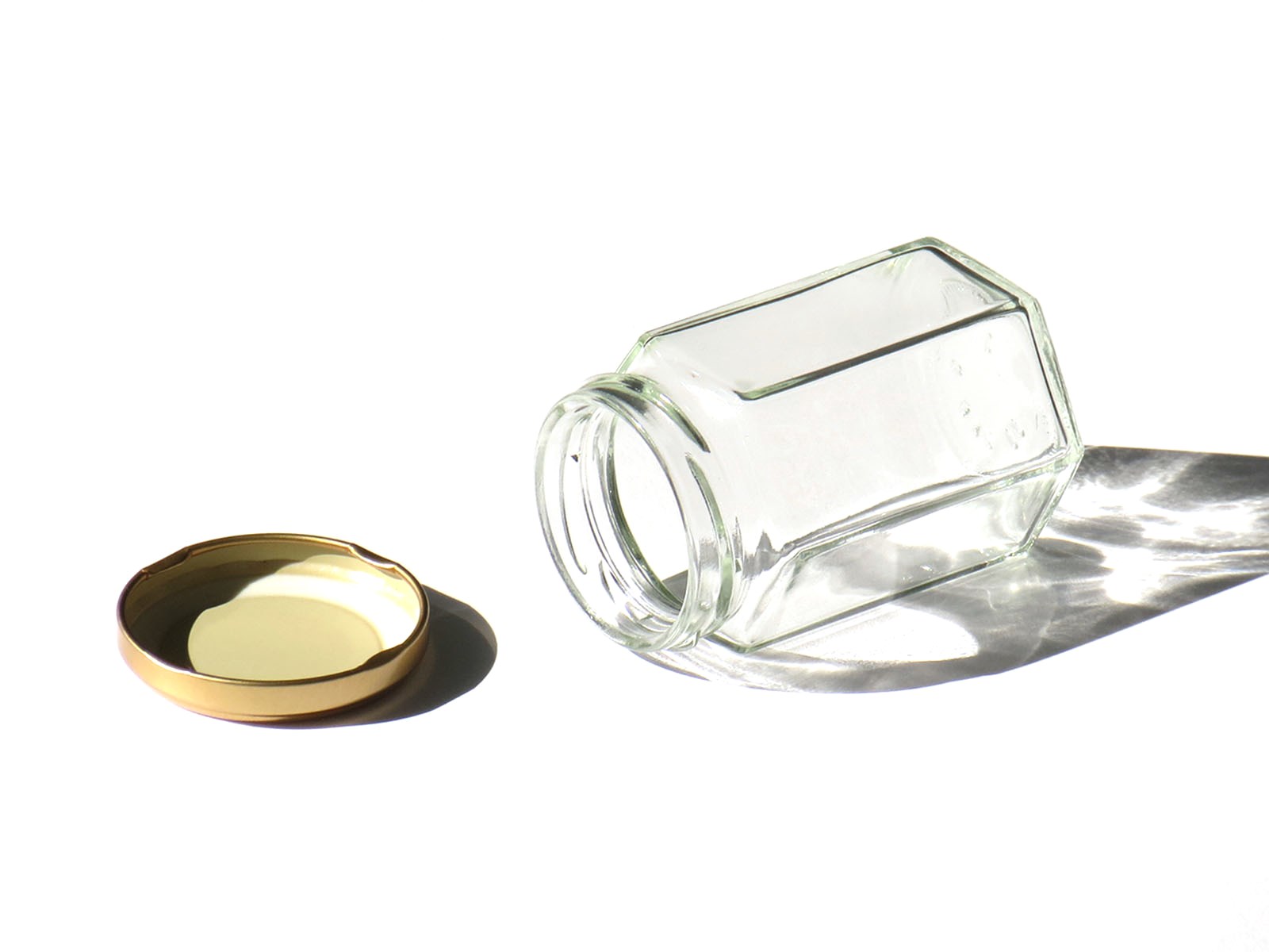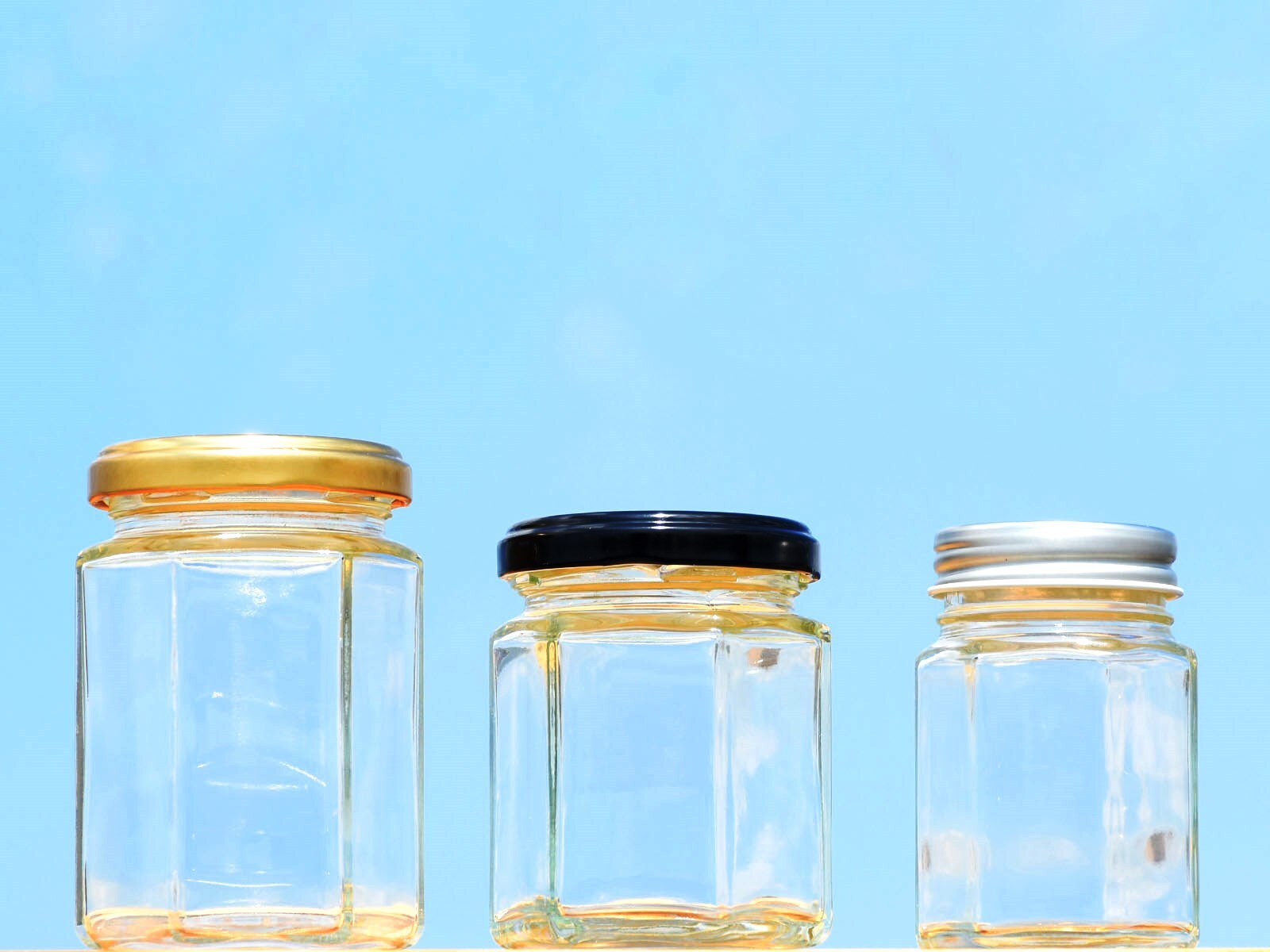 使い易い容量とスタイリッシュなデザインで今や定番中の定番の六角ジャム瓶です。